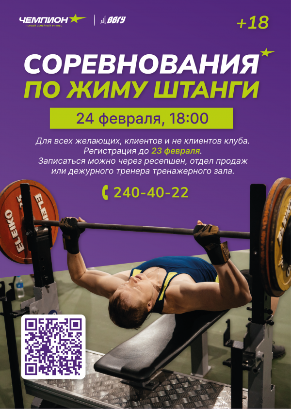 Проверьте себя! Соревнования по жиму штанги лежа в СК «Чемпион» !