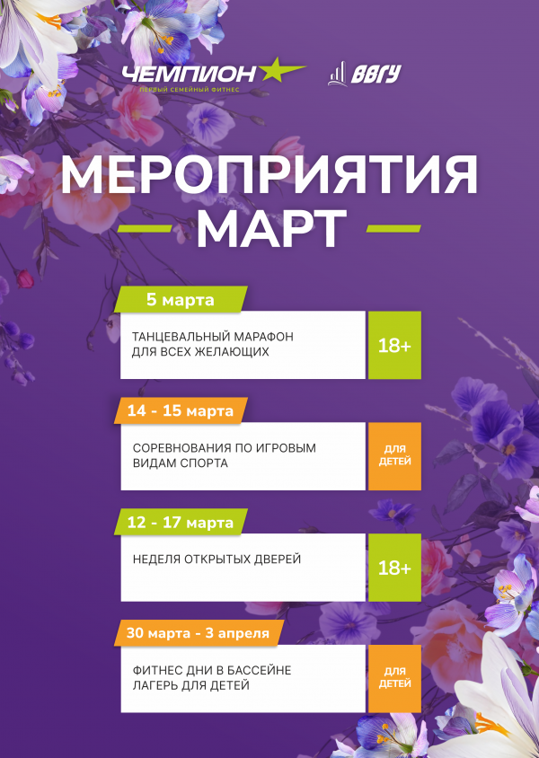 Мероприятия СК «Чемпион» в марте