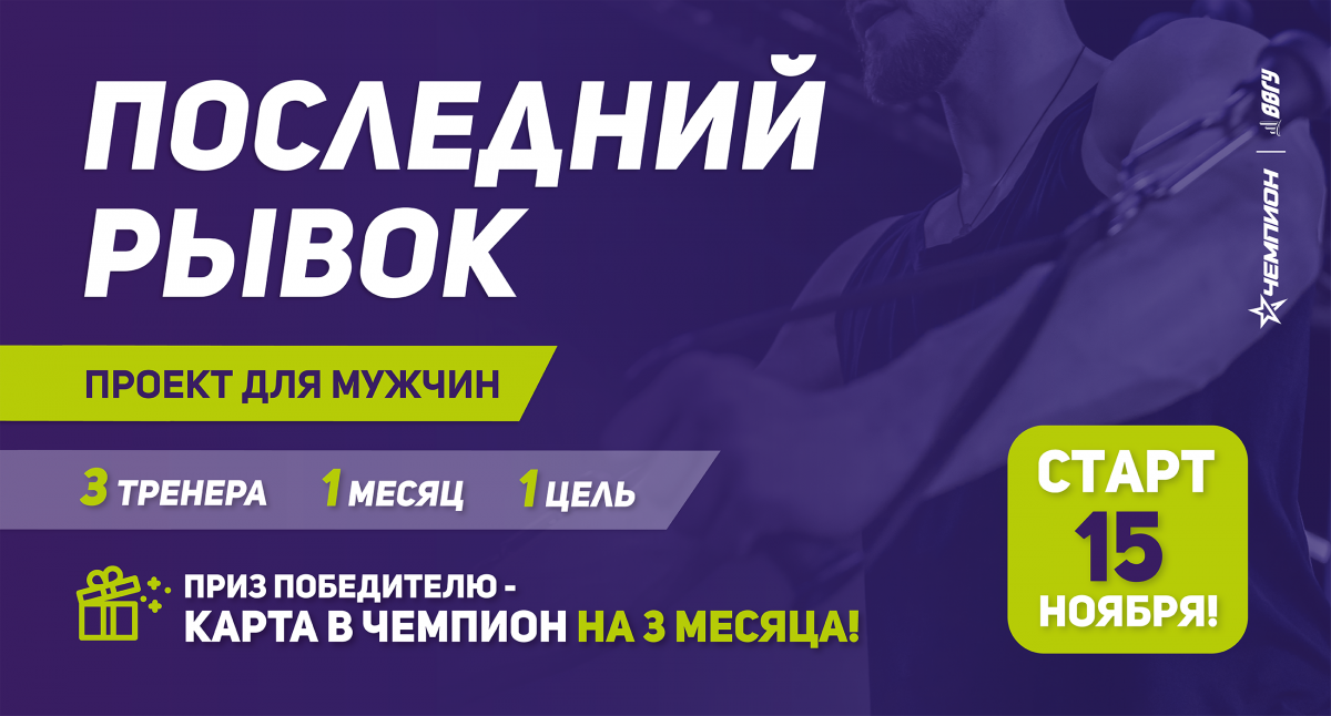 Проект для мужчин «Последний рывок» — это не просто тренировки. Это программа, которая создаёт характер, закаляет тело и переводит вас в режим максимальной мощности.